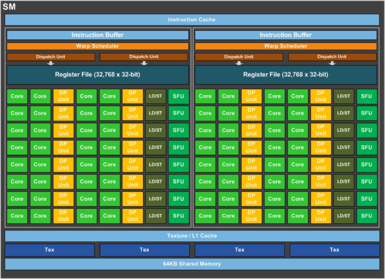 - 32 个用于双精度浮点算术运算的 FP64 Core;