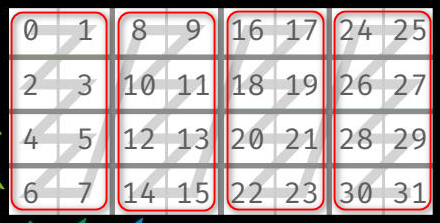 - 对应的,综合 stride 为 ((dx1, dx2), (dy1, dy2)),得到((1, 4), (2, 8))。